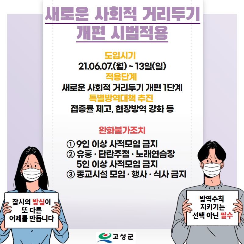 [알림] 고성군, 6월 7일부터 사회적 거리두기 개편안 시범지역 적용